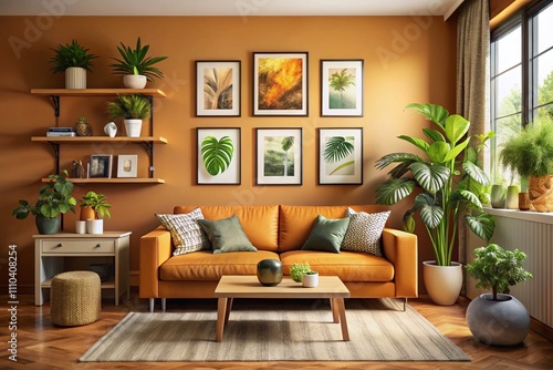 Stylish Frame Mockup Featuring ISO A Paper Frame on Wall in a Cozy Living Room with Modern Decor and Natural Lighting for Interior Design Inspiration
