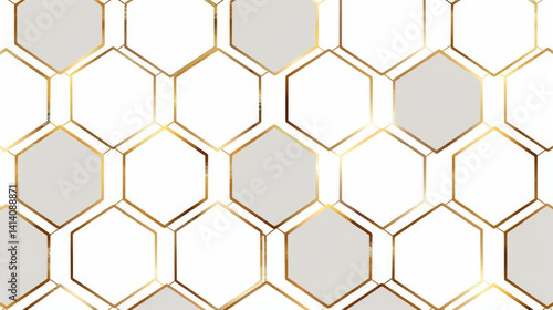 stylish geometric pattern featuring hexagons in gold and white, perfect for modern decor and design projects. This elegant design adds touch of sophistication to any space