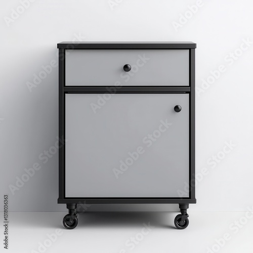 Stylish Gray Nightstand with Drawer and Shelf on Rolling Wheels
