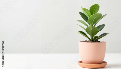 Stylish indoor plant in pastel pot, modern home decor, copy space