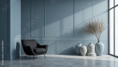 Stylish interior design with muted tones and a comfortable armchair accentuating a serene space filled with natural light