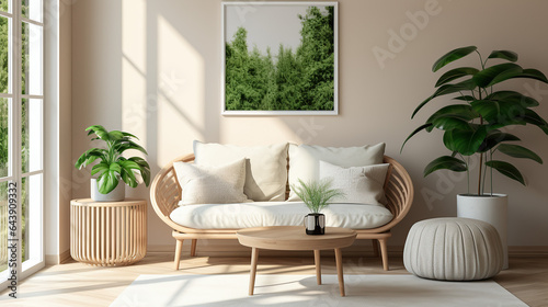 Stylish Living Room Interior Mockup, Modern Interior Design, 3D Render, 3D Illustration