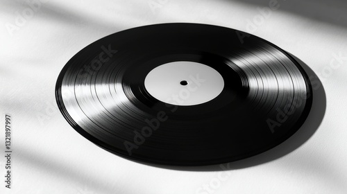 Stylish Minimalist Design of a Black Vinyl Record on White Surface
