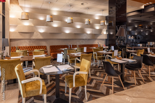 Stylish modern restaurant interior with cozy seating