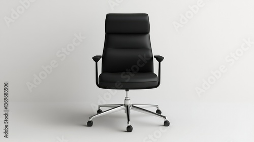Stylish office chair with adjustable height and a sleek black leather finish, centered against a bright white background