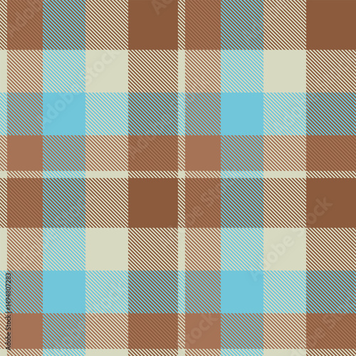 Stylish pastel plaid pattern in beige, brown, and light blue. Perfect for textile design, website backgrounds, or crafting projects.