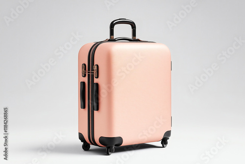 stylish peach colored suitcase with black accents, perfect for travel. Its durable design and smooth wheels make it practical choice for any journey