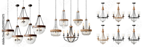 Stylish pendant lamps featuring glass shades, metallic finishes, and wooden accents, perfect for modern and rustic home decor designs