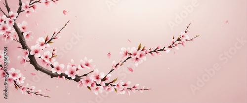 Stylish Pink Cherry Blossom Banner on Pale Pink Background for Calm and Peaceful Setting
