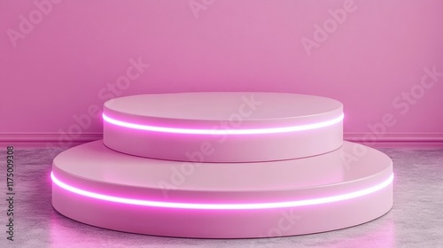 Stylish pink circular stages for events modern setting decorative display bright lighting trendy concept