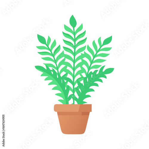 Stylish potted plant illustration against black backdrop, simple greenery and terracotta pot