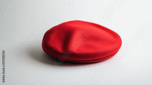 Stylish red beret prop highlighted against an immaculate white background, minimalistic view