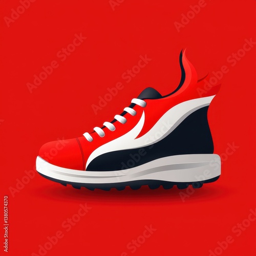 Stylish red sneaker design with black and white accents on a vibrant red background