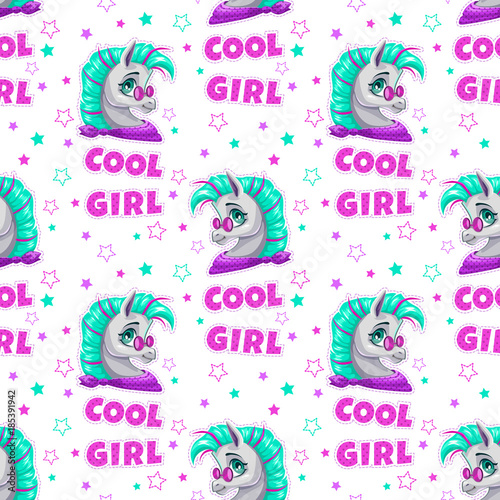 Stylish seamless pattern with cute cartoon pony face
