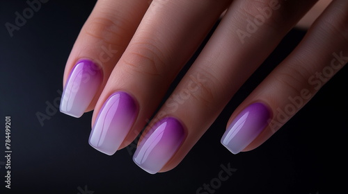 Stylish short purple and white ombre manicure on a female hand, perfect for modern beauty trends and nail art inspiration