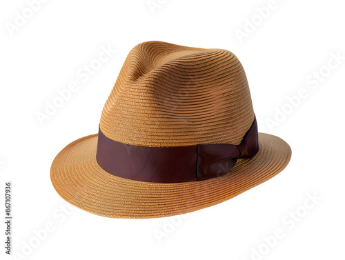 Stylish straw fedora hat with a dark band. Perfect accessory for summer fashion or casual wear. Great for outdoor events and beach outings.