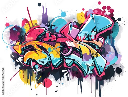 Stylish Streetwear Graffiti Artwork for Shirt Design on White Background