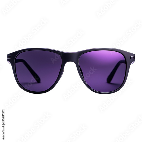 Stylish sunglasses with purple lenses on a black background