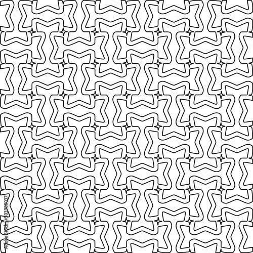 Stylish texture with figures from lines. Abstract geometric black and white pattern for web page, textures, card, poster, fabric, textile. Monochrome graphic repeating design.