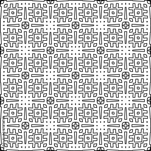 Stylish texture with figures from lines. Abstract geometric black and white pattern for web page, textures, card, poster, fabric, textile. Monochrome graphic repeating design.