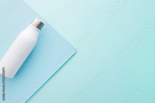 Stylish White Water Bottle on Soft Blue Background for Lifestyle