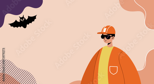 Stylish young man illustration with cap and sunglasses on an abstract background featuring a bat silhouette. Ideal for modern design, youth lifestyle, or seasonal marketing content.
