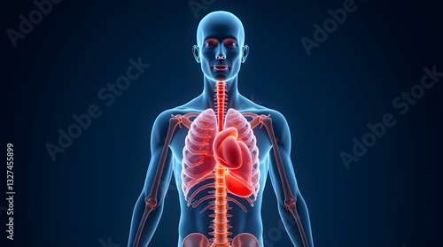 Stylized 3D Human Respiratory System Heart Lungs Anatomy Medical Illustration
