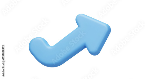 Stylized 3D Render of a Light Blue Arrow Curving Upward on a White Background