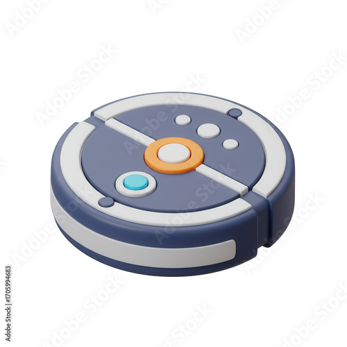 Stylized 3d robot vacuum cleaner icon isolated on transparent background