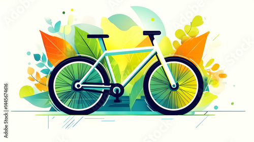 Stylized Bicycle Illustration with Vibrant Botanical Accents for Eco-Friendly Lifestyle