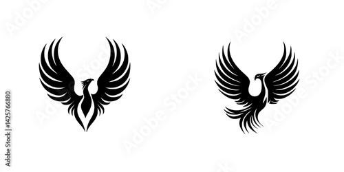 Stylized black phoenix icons showcasing powerful wing designs for branding and graphic use