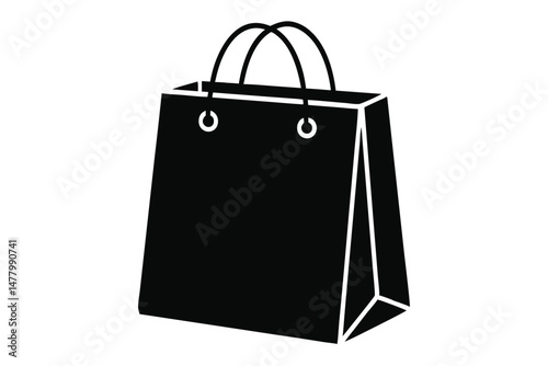 Stylized Black Shopping Bag Illustration Rectangular Form with Handles for Commerce and Retail