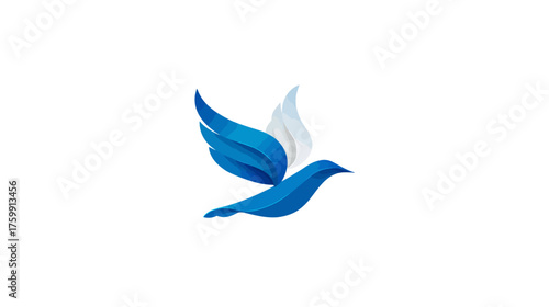 Stylized blue bird flying gracefully, a modern abstract design vector illustration representing freedom, peace, and spirituality.