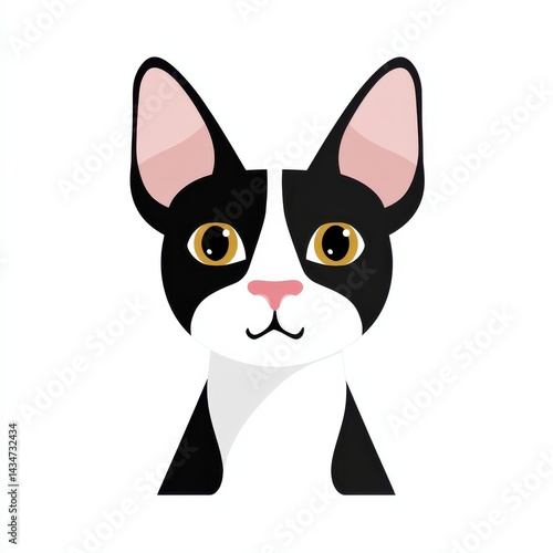 Stylized cartoon cat face with black and white colors and yellow eyes