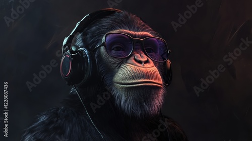 Stylized Chimpanzee Wearing Headphones and Glasses