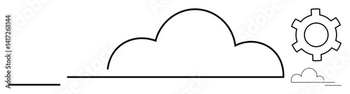 Stylized cloud with gear symbol illustrating technology, innovation, cloud computing, storage, automation, software development. Ideal for IT solutions, technology services, system optimization data