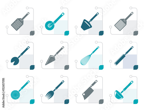 Stylized different kind of kitchen accessories and equipment icons - vector icon set