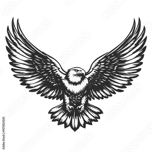 Stylized Eagle With Spread Wings Illustration In Black And White For Mascot Emblem And Graphic Design Projects