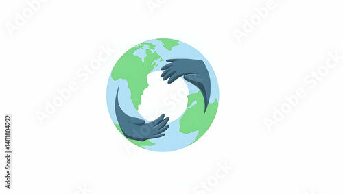 Stylized Earth Illustration, Minimalist Design with Hands Embracing the Globe, Symbolizing Care and Sustainability for a Better Future