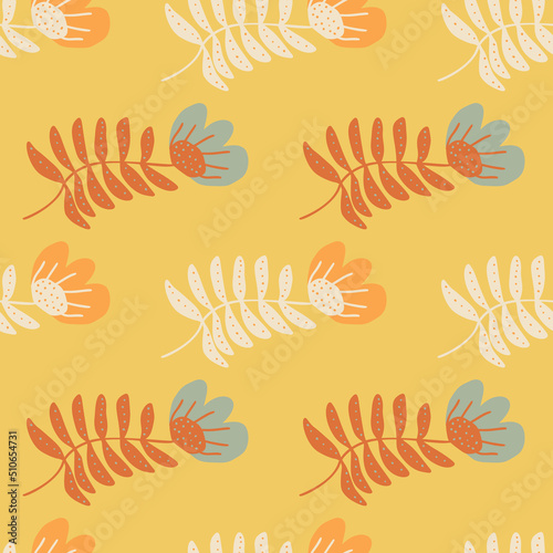 Stylized folk flower seamless pattern. Hand drawn elegant botanical illustration.
