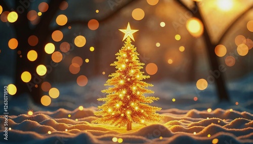 Stylized golden tree radiating warmth and festive charm in a cozy indoor setting