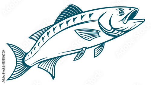 Stylized Illustration of a Jumping Fish with Detailed Fins.