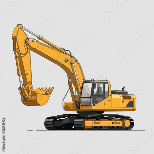 Stylized illustration of a yellow excavator poised for earthmoving activities in construction