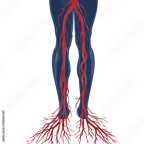 Stylized Illustration of Legs with Red Veins Resembling Roots