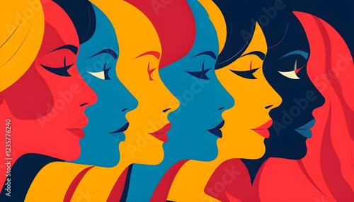 Stylized illustration of superimposed colorful female profiles symbolizing multi-layered personality and generational change