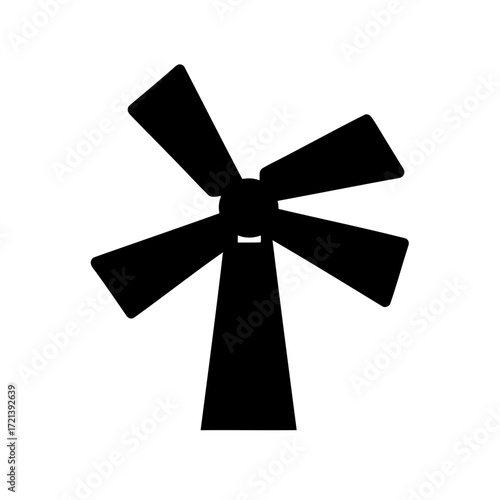 Stylized image depicting a classic windmill with simplistic geometric forms in silhouette