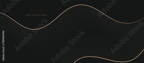 Stylized line art background design with black and golden wavy lines. Design elements of science and technology elements with line design. Vector illustration of black and golden wave lines.