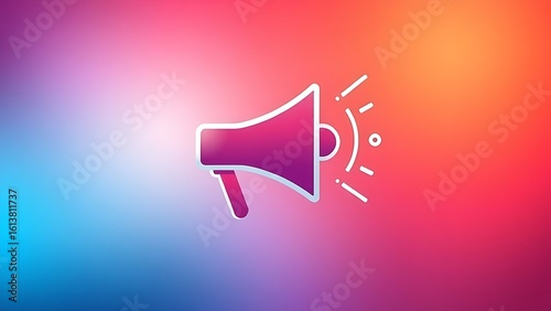 Stylized megaphone icon with abstract sound waves on a vibrant gradient background, symbolizing communication and energy.