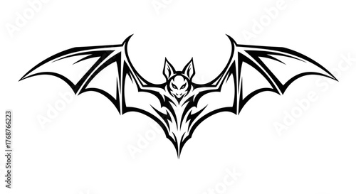 Stylized monochrome image of a bat with outstretched wings in tribal tattoo style