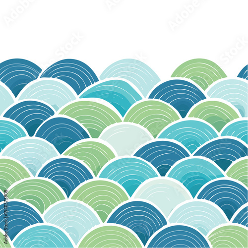 Stylized Ocean Waves Illustration in Blues and Greens with Delicate Hand Drawn Details